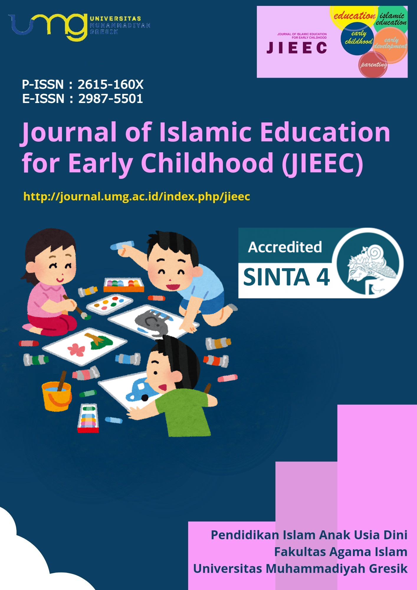 Journal of Islamic Education for Early Childhood (JIEEC) atau Jurnal Pendidikan Islam Anak Usia Dini merupakan jurnal yang dipublikasikan oleh PIAUD Fakultas Agama Islam, Universitas Muhammadiyah Gresik.